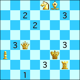 در بعضی از خانه ها، عددی مشخص شده است. این عدد نمایانگر تعداد تهدیدهایی است که از طرف مهره های پنهان، به آن خانه وارد می شود. همچنین شرایط زیر نیز برقرار است: