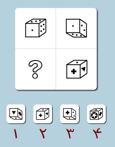 در هر ردیف، تاس سمت چپ به نسبت تاس سمت راست، 180 درجه دوران کرده است.