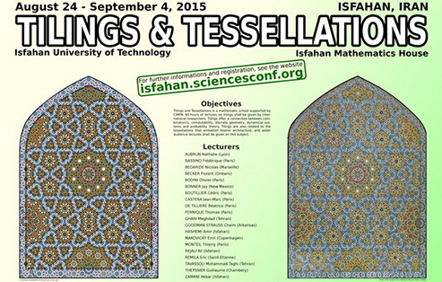 كارگاه "جورچینی و كاشیكاری" در شهریور سال آینده به میزبانی اصفهان در دانشگاه صنعتی اصفهان برگزار میشود، در این كارگاه به بررسی نقش ریاضیات در شكلگیری كاشیكاریها میپردازند.
